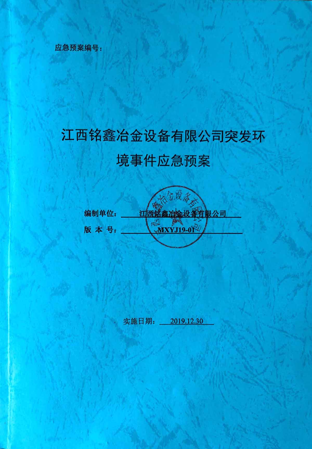 江西銘鑫冶金設(shè)備有限公司突發(fā)環(huán)境事件應(yīng)急預(yù)案